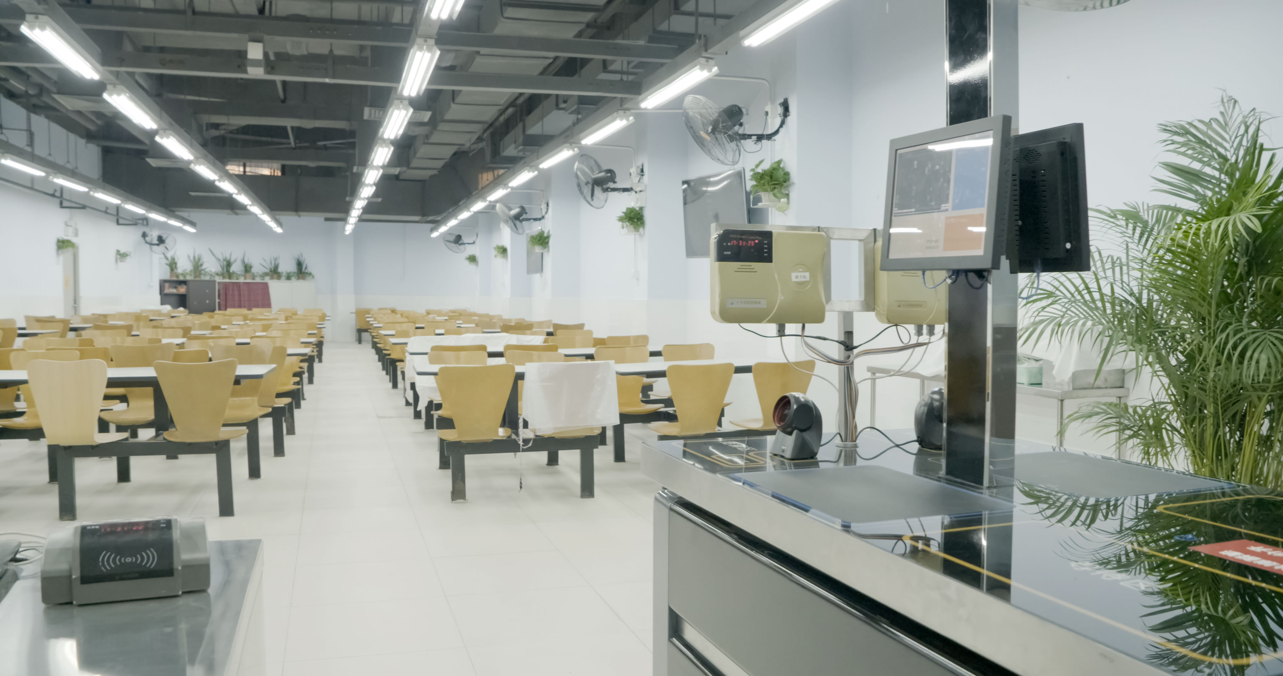 溢達(dá)集團(tuán)廣東紡織生產(chǎn)基地位于佛山高明區(qū),作為溢達(dá)最大的生產(chǎn)基地之一,該生產(chǎn)基地超過2萬員工,包括總廠和幾家分廠。其中總廠食堂超過1萬員工就餐,總廠食堂根據(jù)員工需求分為普通食堂、素食食堂、包間、自選食堂等多種業(yè)態(tài)模式,其中自選食堂定位為白領(lǐng)高端餐廳,為此特意準(zhǔn)備打造出充滿黑科技?xì)庀⒌闹腔鄄蛷d!