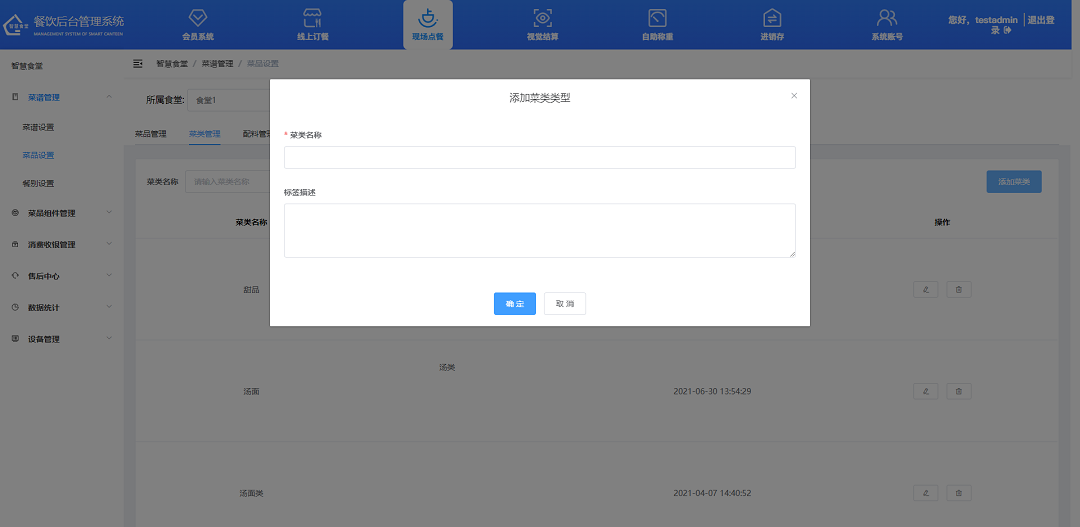 ②輸入菜類(lèi)名稱、備注,點(diǎn)擊“確定”按鈕,即添加成功。