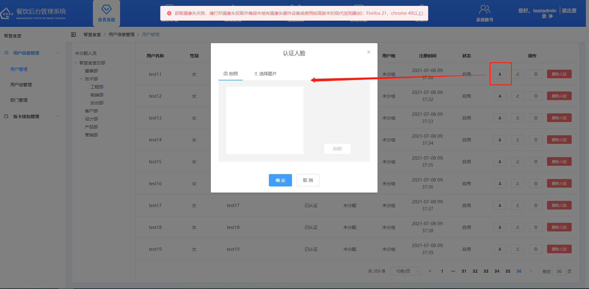 ④點擊右側操作人臉小圖標進行人臉認證,方便系統(tǒng)使用人臉識別功能,可進行批量注冊人臉;