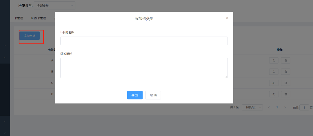 ①點(diǎn)擊“添加卡類”按鈕,系統(tǒng)彈出添加卡類型頁面;