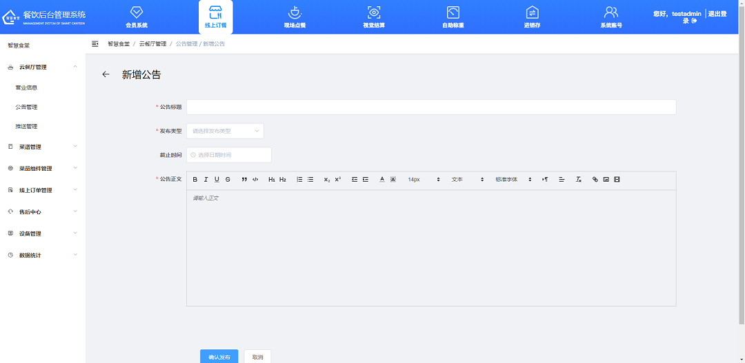 設(shè)置發(fā)布食堂公告