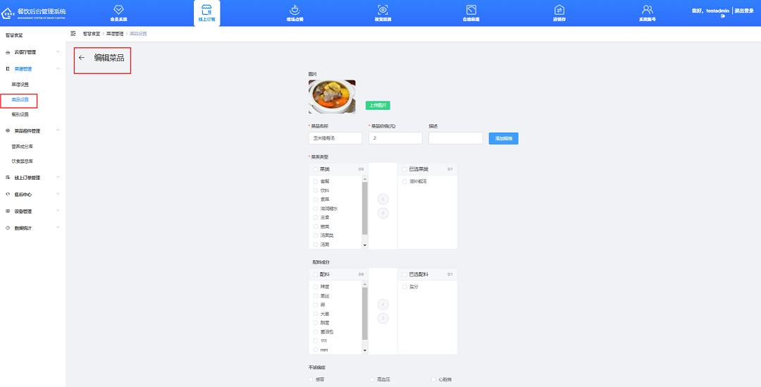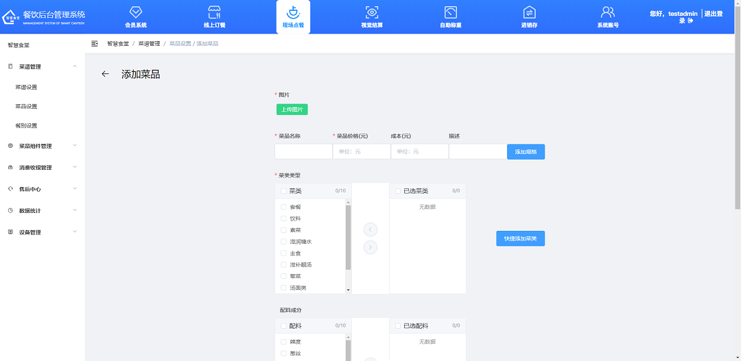 ③選擇菜品所屬的分類(lèi),選擇菜品搭配的配料;