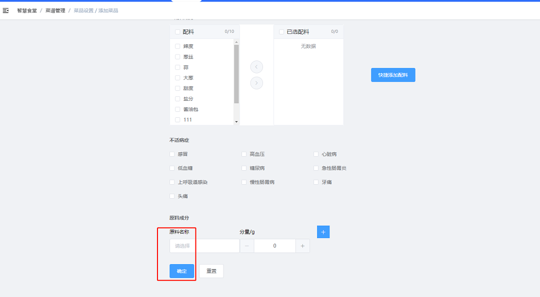 ④勾選不宜進(jìn)食此菜品的特殊病癥(用于醫(yī)院),若無(wú)此需求可不勾選;